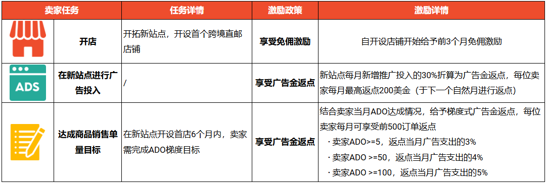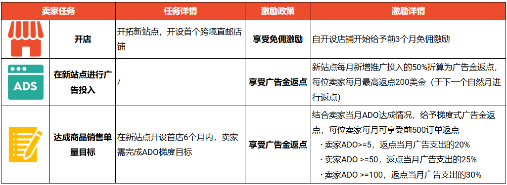 为了帮助Shopee跨境卖家快速开拓新市场,Shopee推出拓站激励计划,对在新加坡、马来西亚、泰国、菲律宾、墨西哥、哥伦比亚、智利站点及台湾站点成功开通新店铺的卖家,提供多项优惠政策,包括佣金减免、广告金激励、资源支持等,旨在降低卖家拓站成本,提升新市场开拓效率。