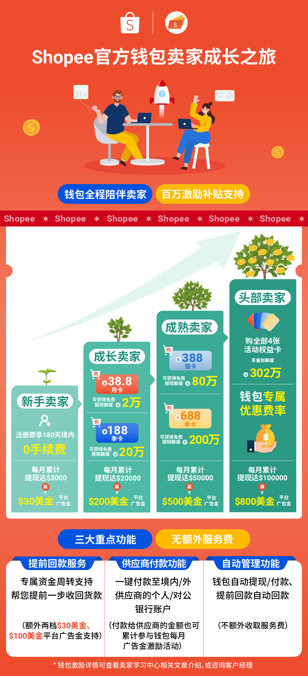 为提供更优质的资源和激励,对于使用Shopee官方钱包进行提现、使用钱包提前回款服务,且达到活动门槛的卖家将进行广告金充值奖励。