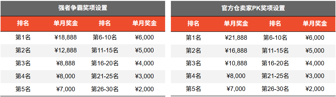 官方仓卖家PK大奖:专属赛道,奖励再加码