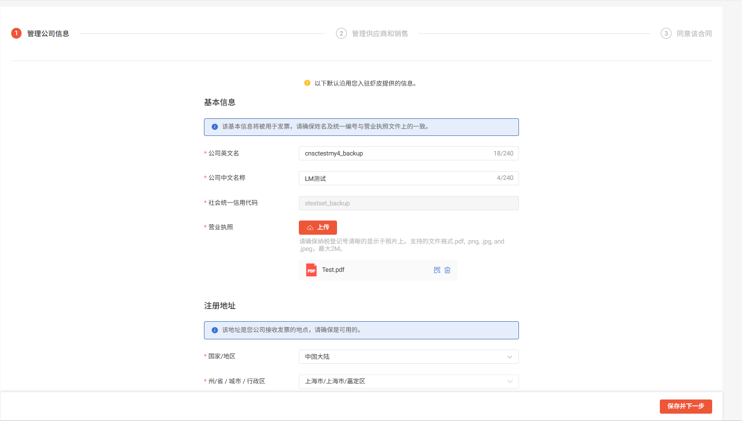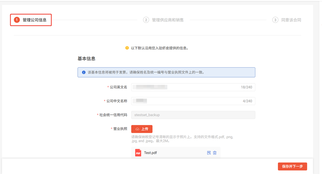 1)基本信息:该基本信息将被用于发票,请确保姓名及统一编号与营业执照信息一致