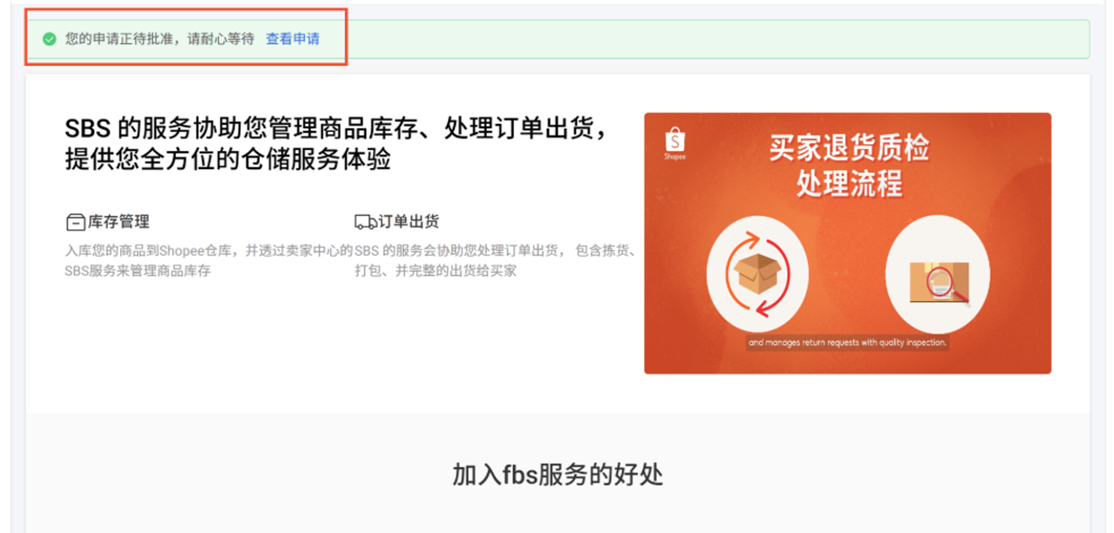 成功激活后,点击【中国卖家中心官方仓官方仓服务】即可看到“恭喜!您已成为Shopee服务的卖家”的欢迎页面。