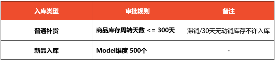 若过去30天平均每天销售2件,则商品库存周转天数 =(100 + 25 + 30)/ 2= 77.5 天,因 77.5天 < 300 天,本次审核满足条件。