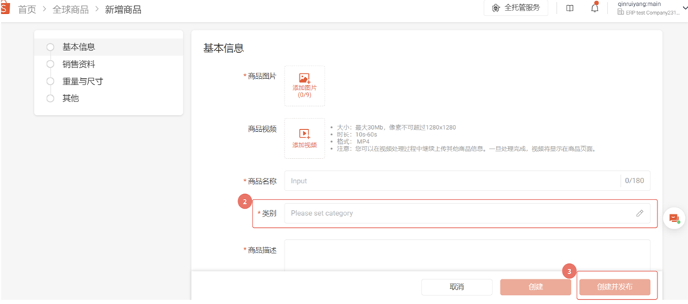 在【类别】处,选择对应的本地类目,按照要求填写新建商品的信息,然后创建并发布到对应的店铺。