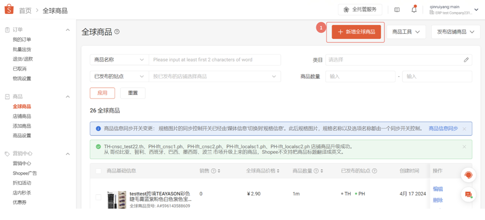 您需在【中国卖家中心商品全球商品】页面【新建全球商品】。
