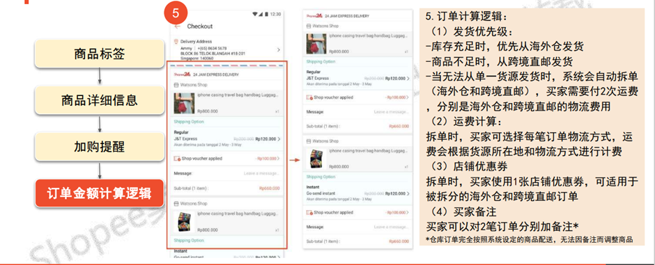(1)发货优先级: 库存充足时,优先从海外仓发货 。商品不足时,从跨境直邮发货 。当无法从单一货源发货时,系统会自动拆单 (海外仓和跨境直邮),买家需要付2次运费 ,分别是海外仓和跨境直邮的物流费用;