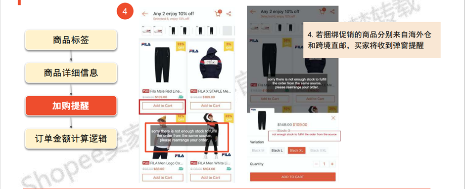 若捆绑促销的商品分别来自海外仓和跨境直邮,买家将收到弹窗提醒。