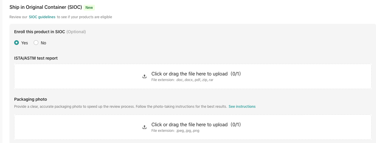 原包装发货 (SIOC):就是用您商品自带的原包装直接发货,FBT不再添加物流包装。