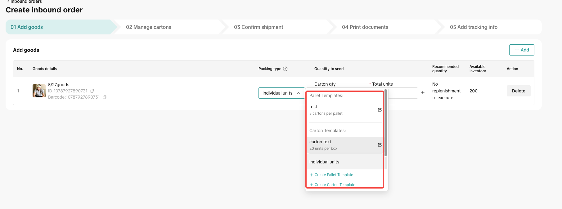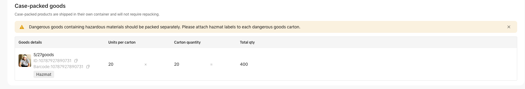 选择入仓货品和装箱方式,并做好混箱or箱规or托规维护,请确保您的: