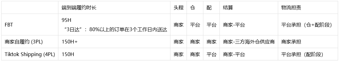 本地备货 (local shipping) = ①商家自履约 (又称3PL/Self Shipping) + ②TikTok Shipping (又称4PL) + ③FBT (平台仓配一体服务)