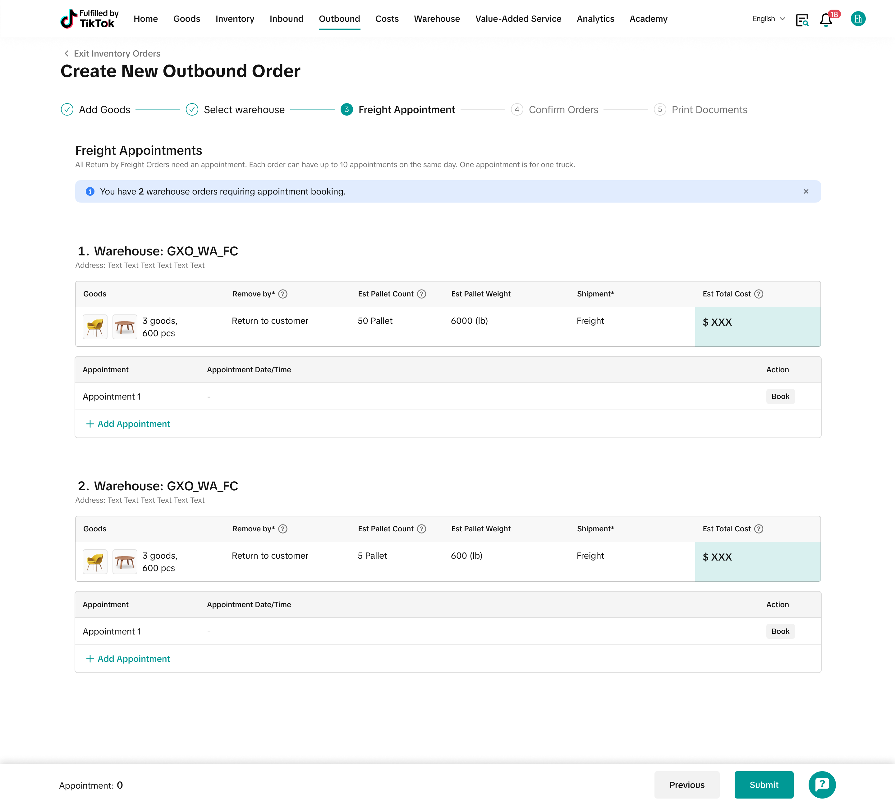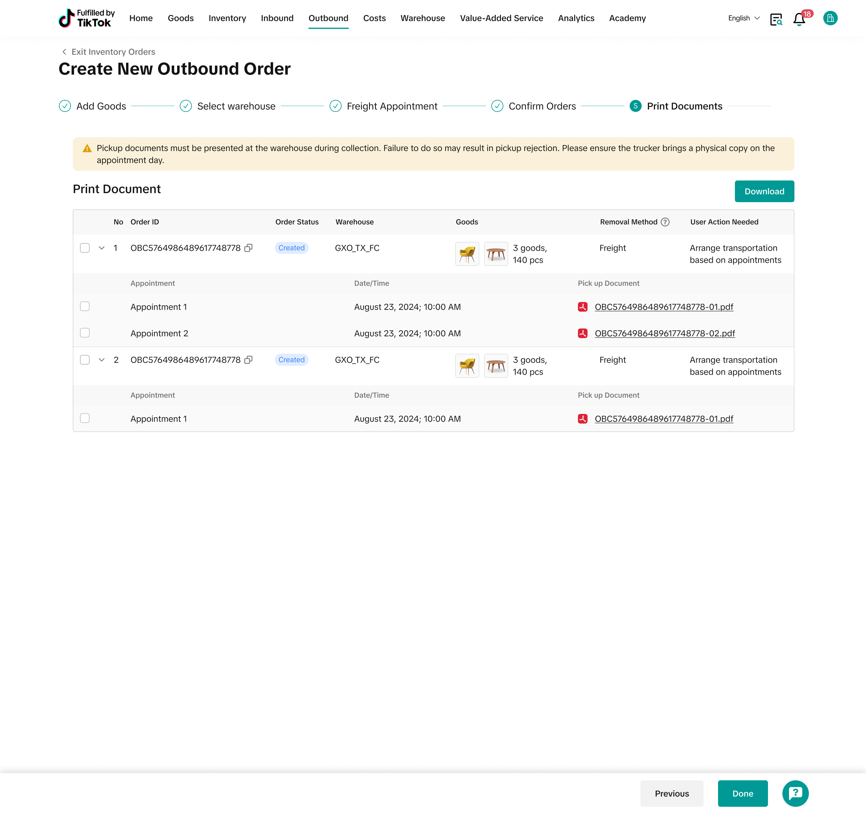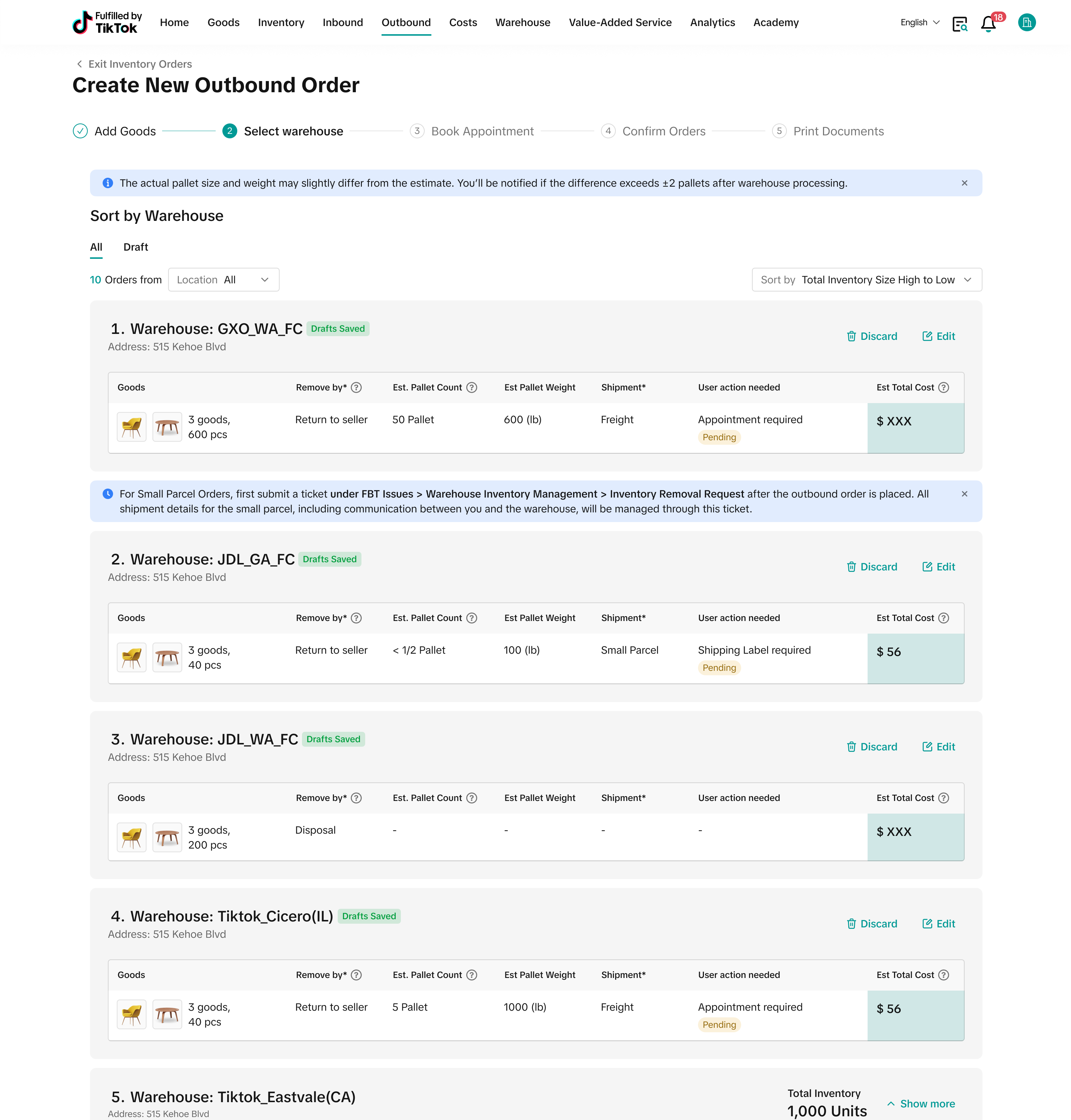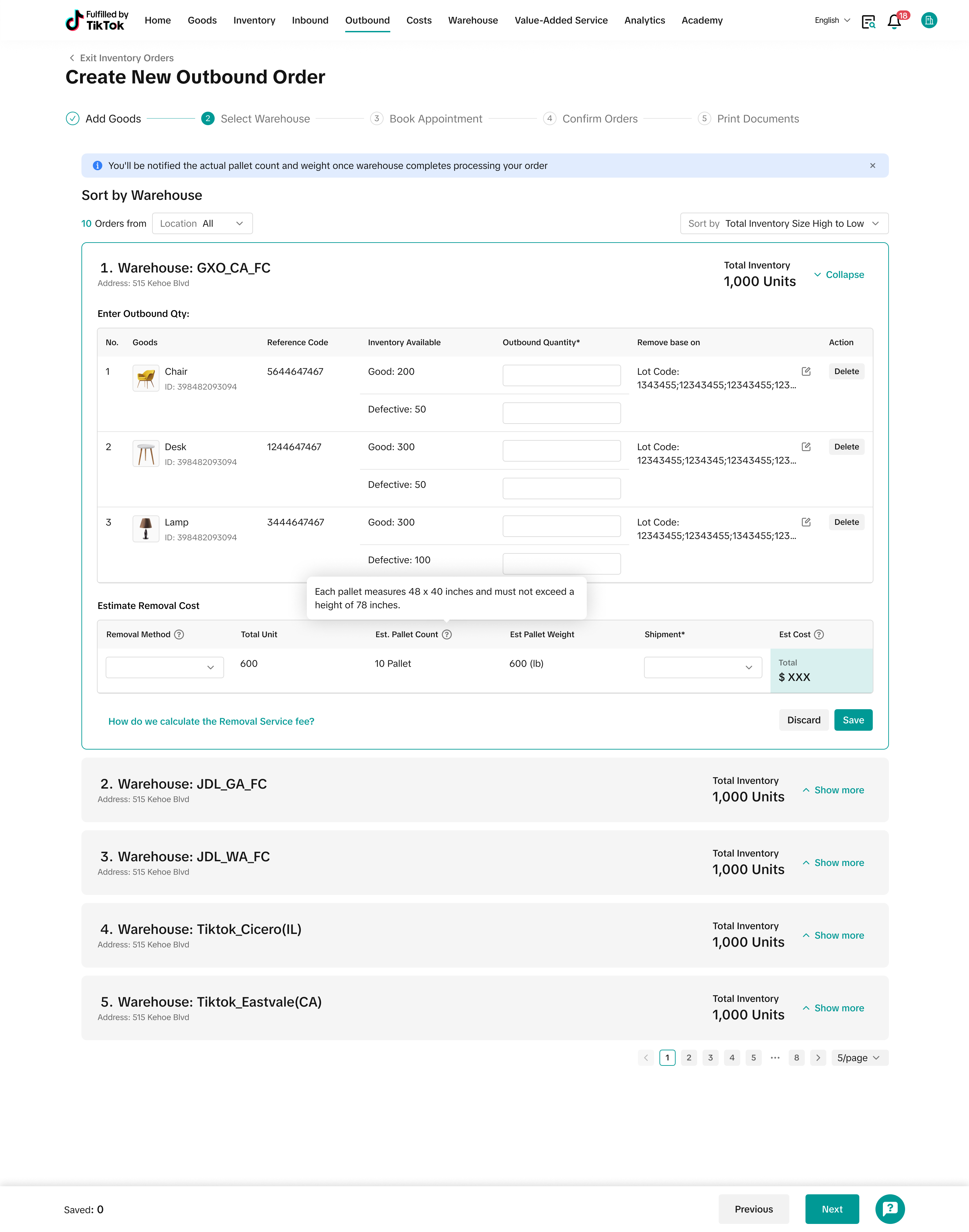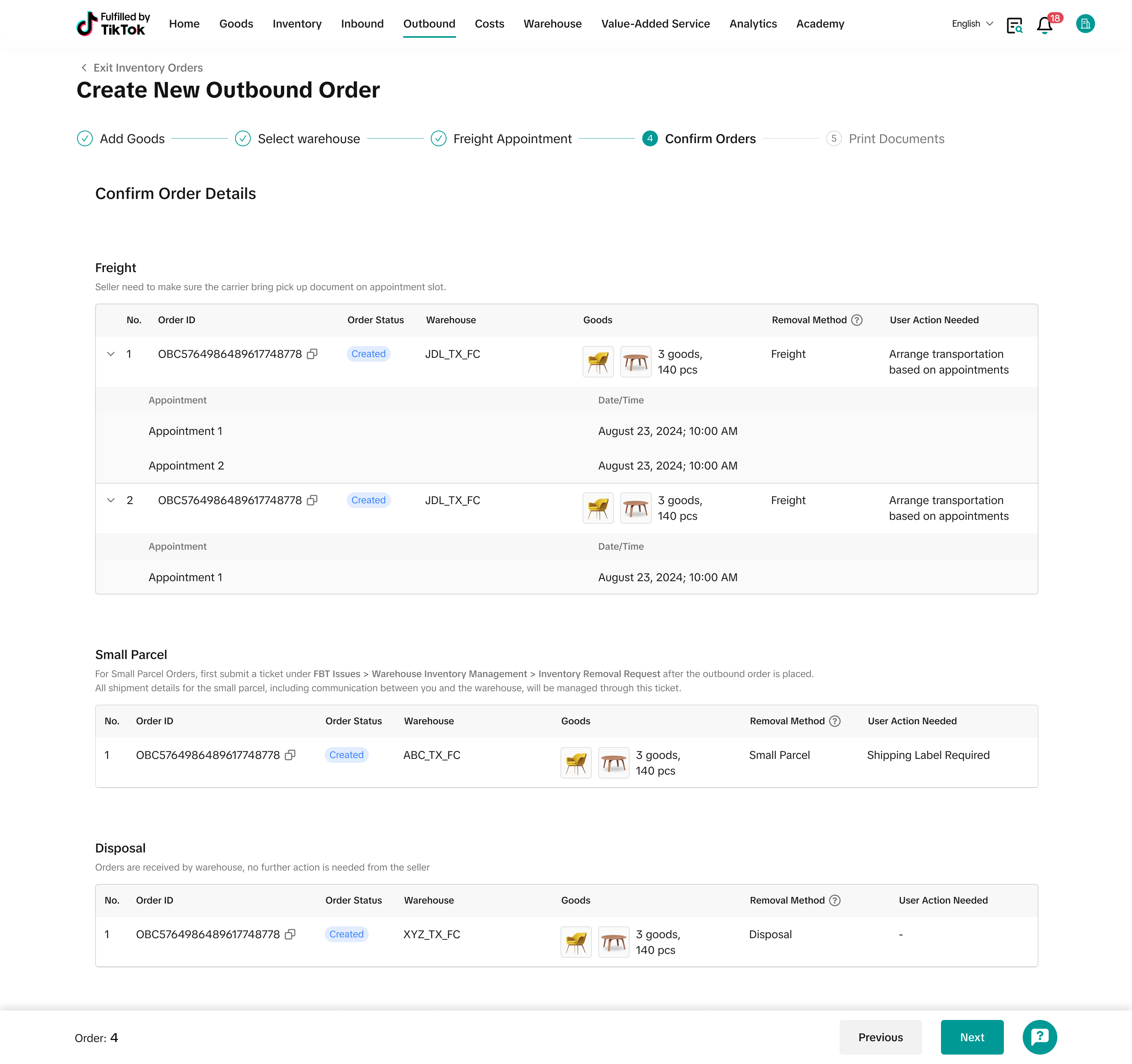 注意:从本步骤开始,您将无法再编辑出库订单中的产品信息。如果需要调整,请返回主页取消订单并重新创建新订单 |