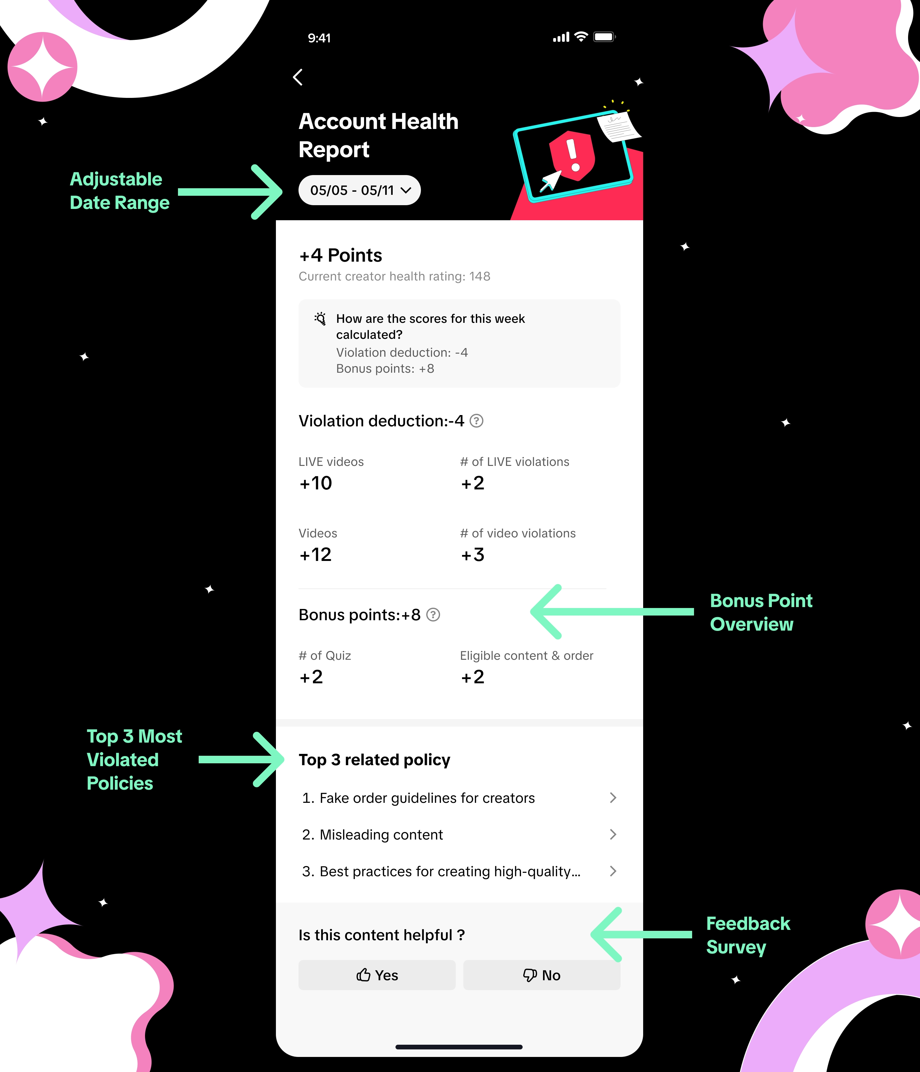 新的TikTok Shop达人的初始健康分为200分。