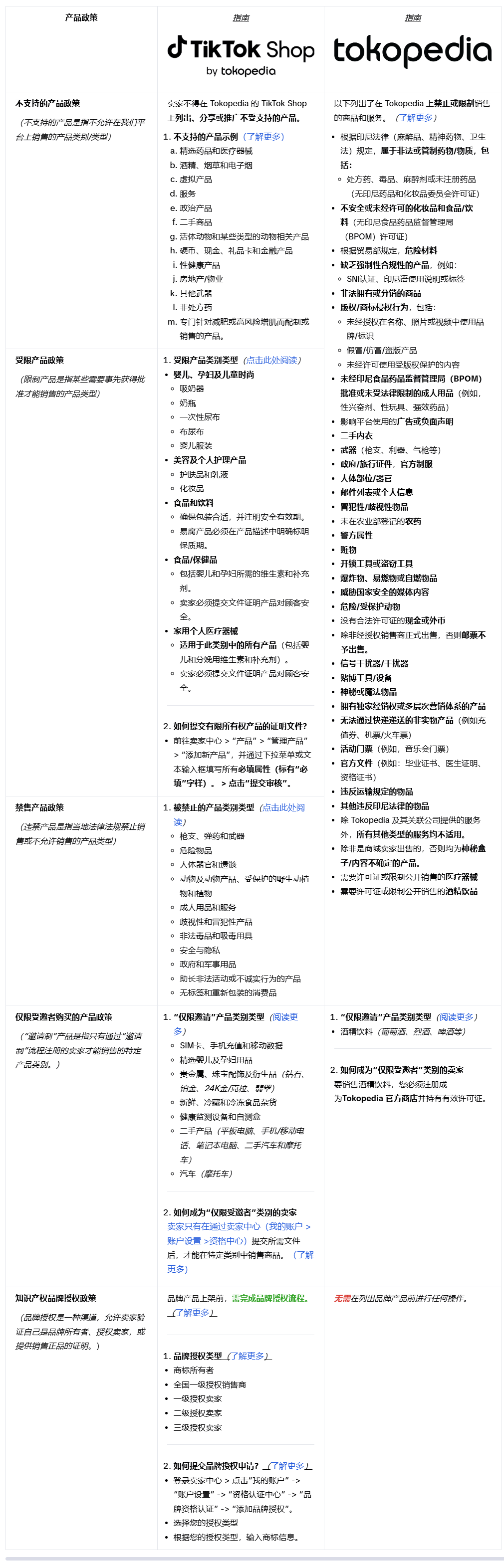 在 Tokopedia 的 TikTok Shop 上架商品前,您必须遵守各平台的商品政策。有些商品完全禁止上架,有些商品需要遵守相关限制,还有一些商品需要获得批准。了解这些规则可以确保您的店铺合规运营,避免不必要的处罚。