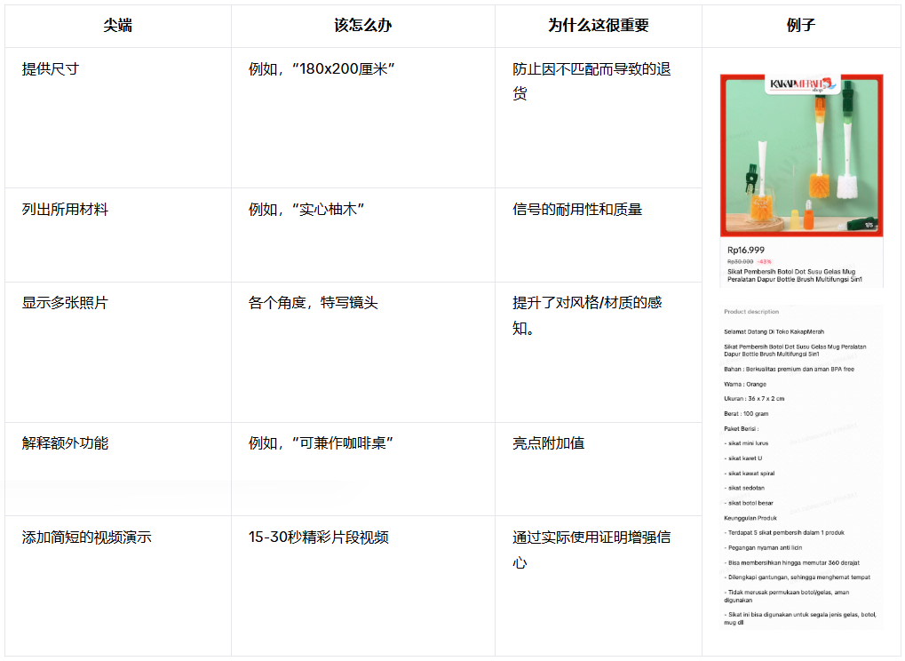 不同的产品类别需要不同的商品详情才能吸引买家并提高转化率。请使用以下清单,让您的产品更具吸引力,更容易促成购买。
