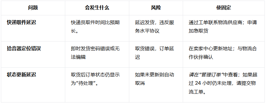 以下是卖家在快递取件、精确设置和发货更新方面最常遇到的问题。
