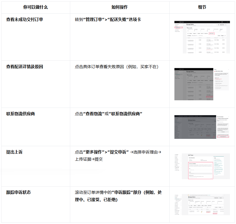 📌当问题是由快递员的错误造成的时,申诉是有用的——例如错误的投递失败报告或买家在送货时不在家。