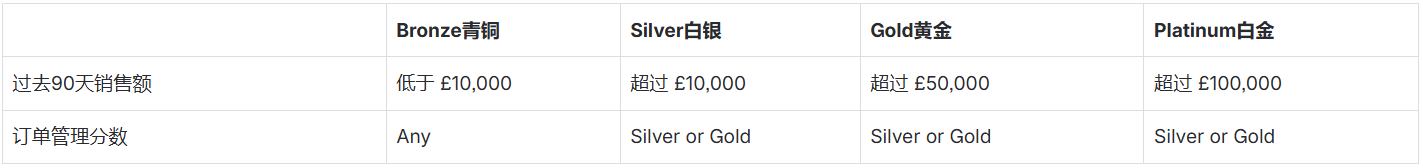 我们仅评估计算您运营可控的个体绩效因素,例如按时发货。