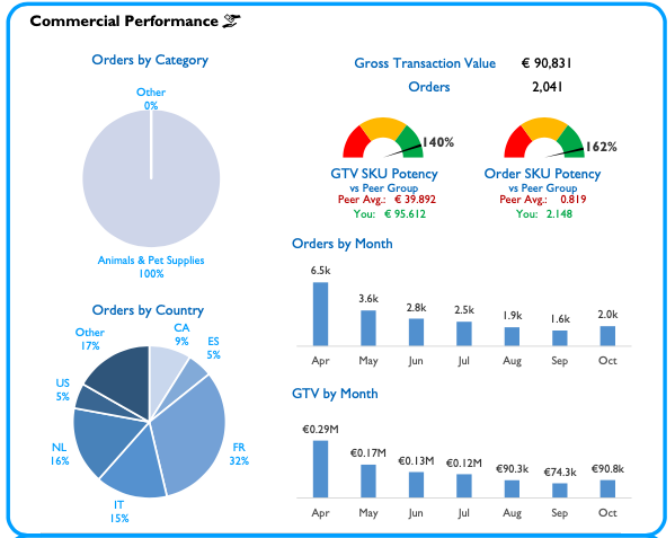 有些仪表盘还可以直接比较您与同行组中其他零售商的绩效。