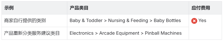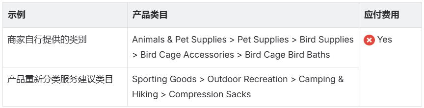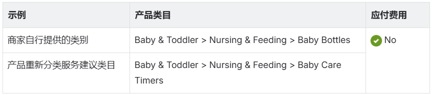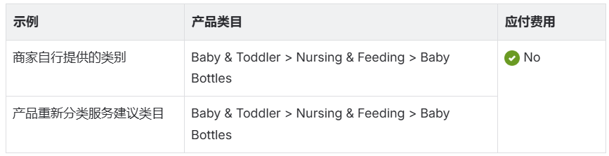 仅当该服务功能,推荐的产品类别信息与您自行提供的产品类别不同时,您才需要支付费用。请参阅下面的示例,了解可能的情况以及是否需要付费。