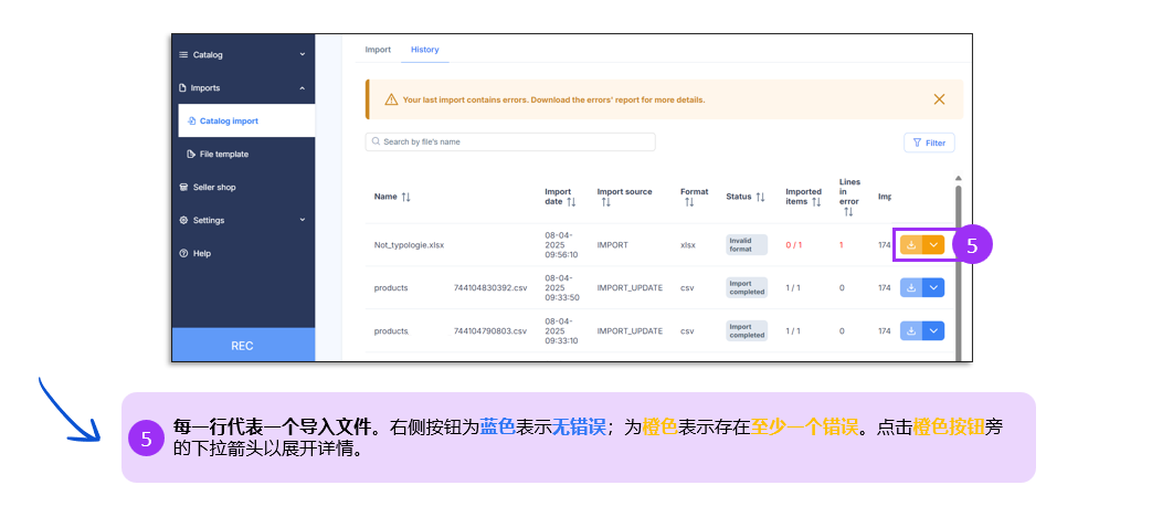 导入后,前往导入历史记录页面,您可以看到: