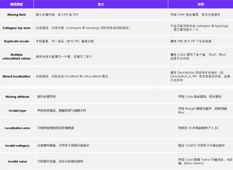 ●⚠注意: 缺少 SKU、EAN、名称、类型 任意一项,系统将无法上传文件