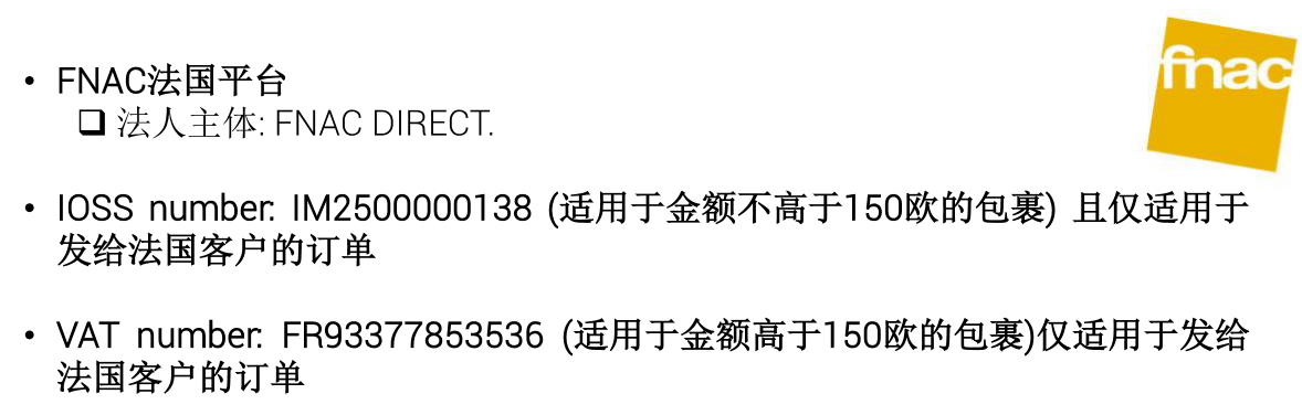 IOSS 和增值税号 VAT: 主体FNAC DIRECT