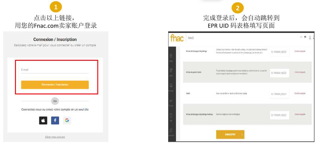 虽然Fnac可以为您代付代缴EPR费用,但是我们鼓励所有卖家自行遵守生产者责任延申,并自行注册、申报以及支付相应费用。