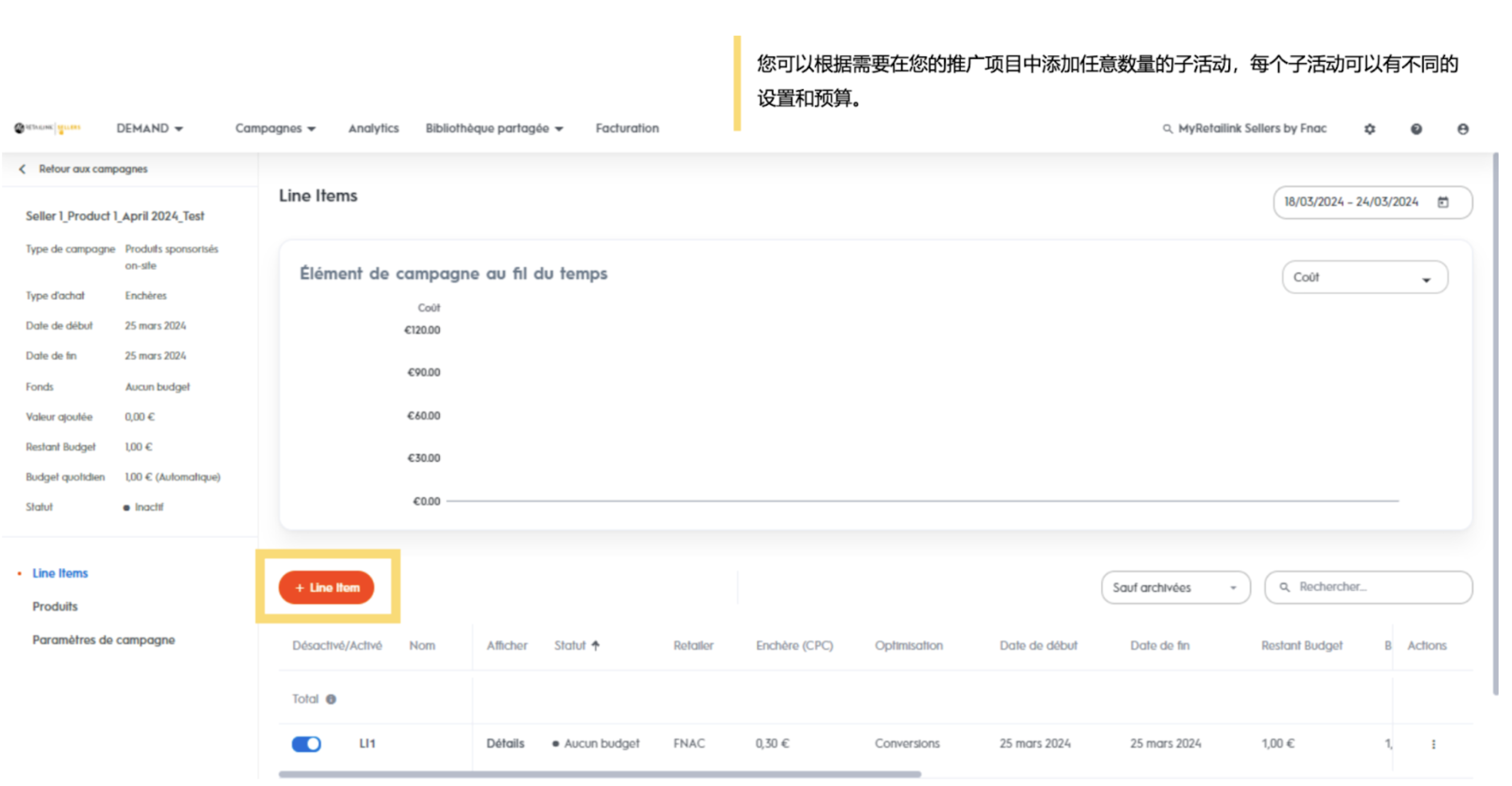 ⭐️ 一个推广项目(Campagne) 可以包含多个子广告活动( Line item )