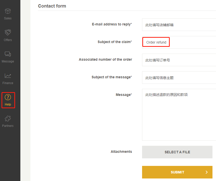 1. 在卖家后台点击Help里的Contact us,申请Fnac平台先代付