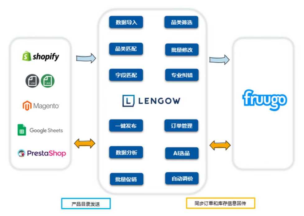 1. 卖家可将现成产品目录,以excel、http、FTP或独立站数据的形式导入Lengow系统;