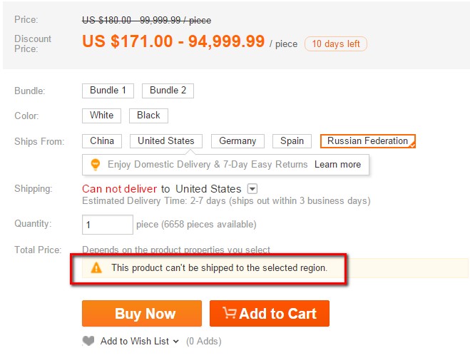 1. 卖家不支持运送该产品到该国家,请卖家核实运费模板是否支持运送到该国家;