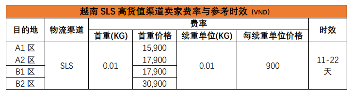 此外,为了更好地服务Shopee跨境卖家,提升商品竞争力,Shopee越南站点新增SLS大于100万越南盾(折后价格>1M VND)高货值物流渠道。