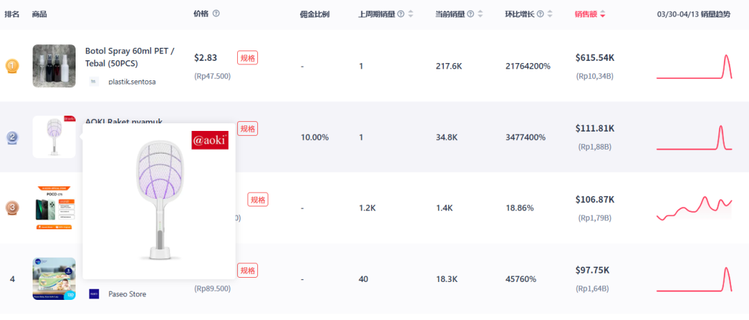 随着东南亚进入炎热潮湿季节,一款创新灭蚊产品"AOKI Raket nyamuk insect killer 2 in1"在TikTok印尼站强势走红。这款可充电500次的双效灭蚊拍凭借超长续航和高效灭蚊性能,完美解决传统灭蚊方式的安全环保隐患。数据显示,4月11日至13日短短三天内销量飙升至3.4万件,销售额突破11.1万美元,成功登顶印尼TikTok商品飙升榜亚军,成为今夏最火爆的家居防疫单品。