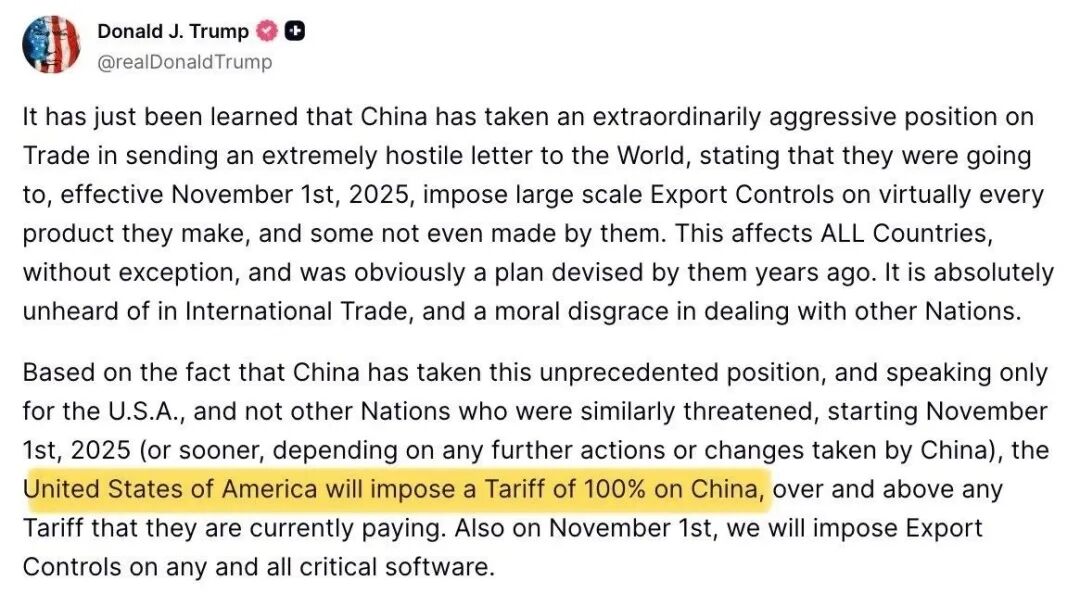 基础上对中国加征100%的关税。同日,我们还将对任何及所有关键软件实施出口管制。