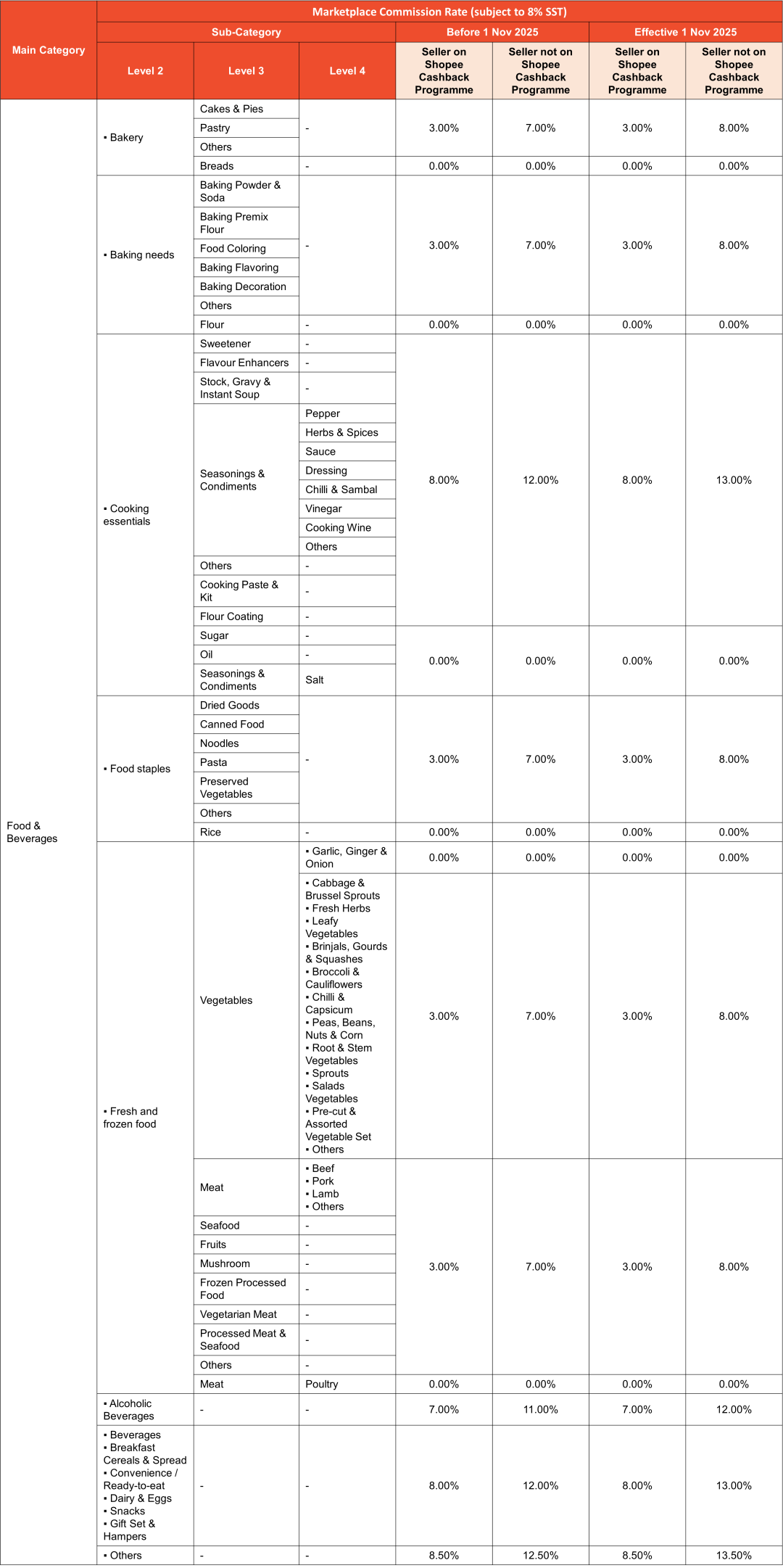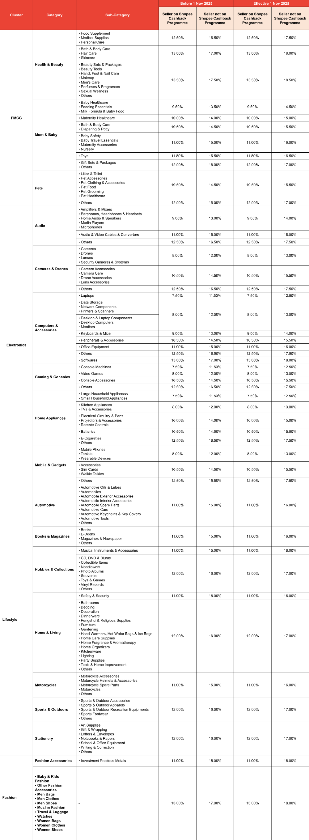 出海网10月13日消息,Shopee马来西亚本土店宣布自2025年11月1日起调整快速消费品类目中食品与饮料部分子品类的佣金费率。此次调整涉及市场与商城两大销售模式下的具体品类,平台已公布详细的佣金结构变更清单。此次调整旨在优化平台商业生态,建议相关品类卖家及时查阅最新佣金政策,为第四季度销售策略做好相应规划。