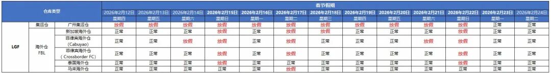 春节假期将至, Lazada跨境店履约时效、物流及在线客服时间安排如下: