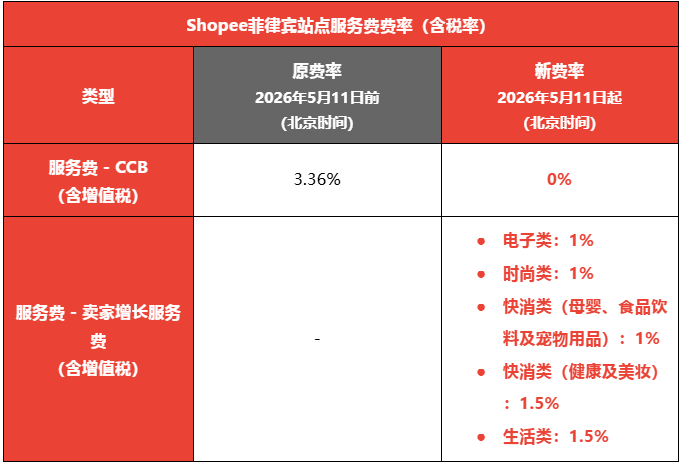 为支持上述举措,自2026年5月11日(北京时间)起,Shopee菲律宾站点所有卖家需为每笔已完成的订单缴纳卖家增长服务费。其中,新入驻店铺首次上架商品起90个自然日内生成的订单免收卖家增长服务费。