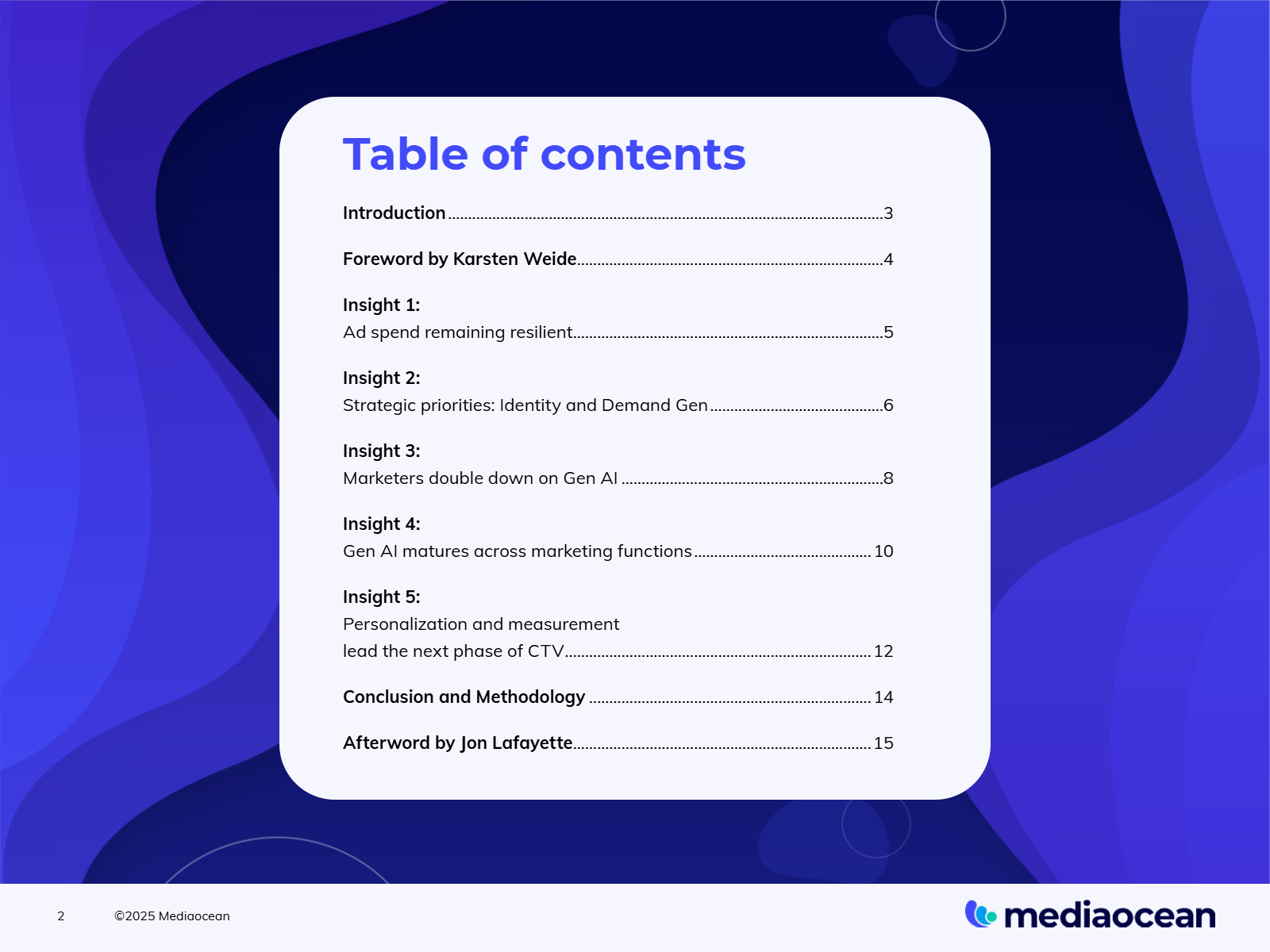 展望 2025 下半年及 2026 年,营销行业正处于 “技术驱动、战略重构” 的关键拐点。一方面,AI 将持续向营销核心职能渗透,创意优化、媒体规划与购买领域的变革已箭在弦上,31% 的受访者预计未来 12 个月创意优化将迎来重大变革,25% 认为媒体规划与购买将发生显著变化;另一方面,第三方信号的全面退场、消费者对个性化体验的高期待,要求品牌必须具备更高的敏捷性与跨职能协同能力。正如报告所强调,成功的品牌不再是被动适应变化,而是主动构建 “智能、互联、面向未来” 的营销体系,通过技术创新与战略聚焦,在不确定性中把握增长机遇,推动行业向更高效、更精准、更具韧性的方向发展。