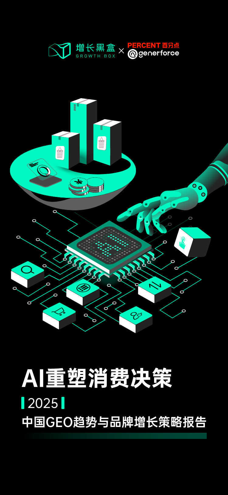 由增长黑盒与百分点科技联合发布的《2025 中国 GEO 趋势与品牌增长策略报告》,基于 2025 年 8 月开展的 1000 份在线定量调研(采用配额抽样,覆盖全年龄段、1-5 线城市且男女比例 1:1.样本符合结构方程模型分析标准)及七大主流 AI 平台(豆包、DeepSeek、元宝、通义千问、Kimi、文心一言、百度 AI+)数据,聚焦 AI 时代消费决策变革与品牌 GEO(生成式引擎优化)增长路径,为企业提供兼具数据支撑与实战价值的洞察。