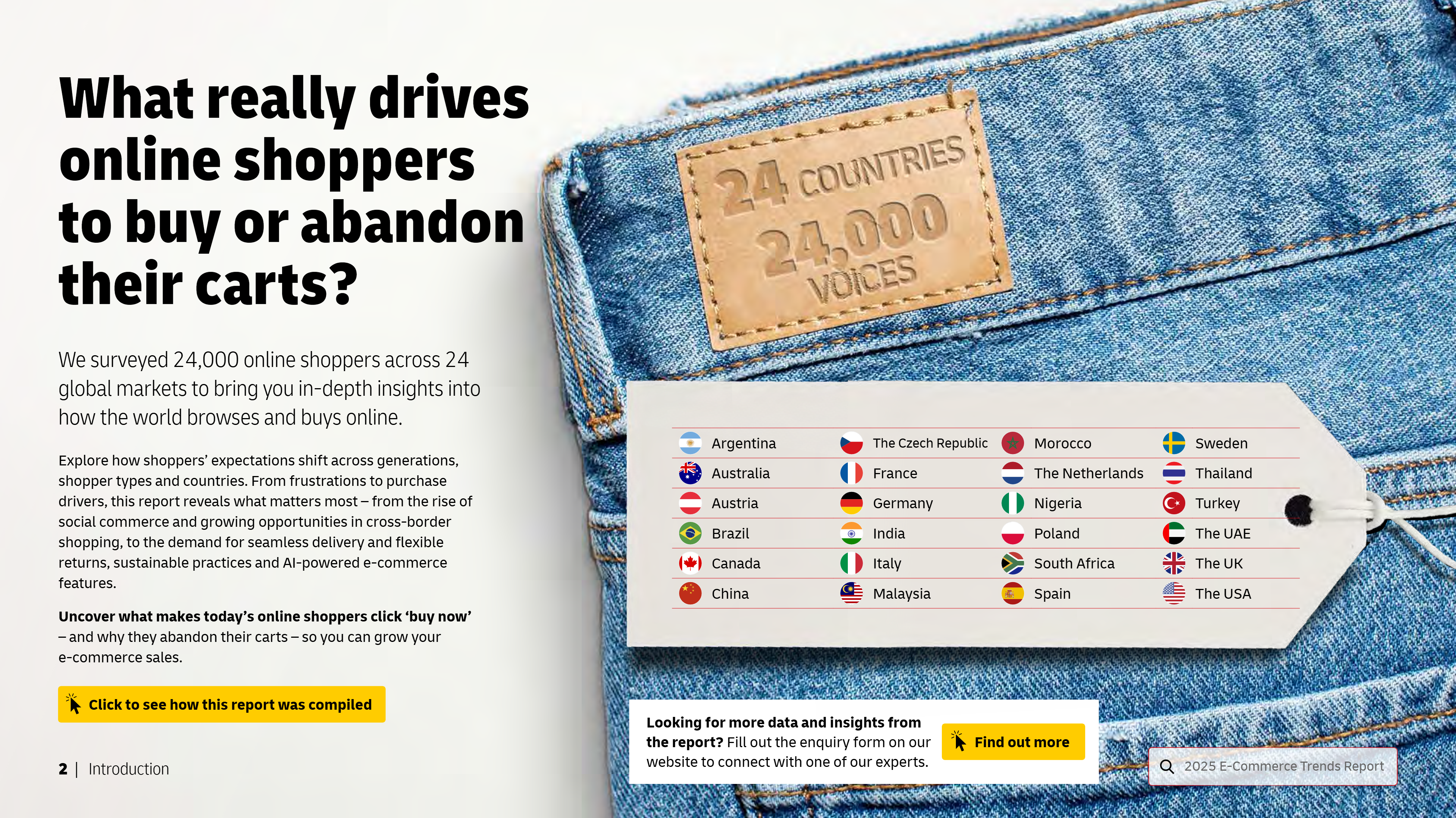 DHL 发布的《2025 年电子商务趋势报告》基于对全球 24 个国家、2.4 万名受访者的深度调研(2025 年 2-3 月开展,受访者近三个月内均有线上购物经历),全面勾勒出当前电商行业的消费特征、渠道偏好与未来趋势,为品牌与零售商提供了覆盖全球主要市场的精准决策依据。报告显示,全球电商已进入 “精细化运营” 与 “体验驱动” 并行的阶段,消费者行为呈现出显著的区域差异与代际特征,而配送体验、可持续性与技术创新正成为影响购物决策的核心要素。