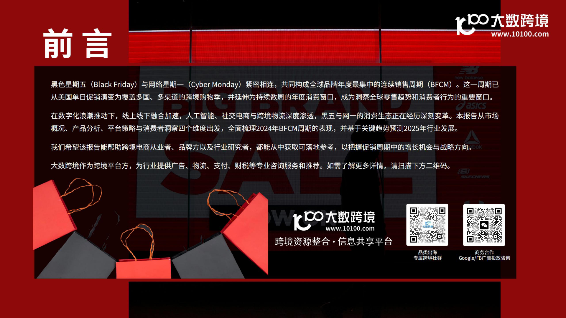 此外,AI 与社交电商深度赋能 BFCM 周期,2024 年黑五期间,零售商使用生成式 AI 频率较前一周高 18%,消费者使用 AI 客服次数增 38%,2025 年 81% 购物者考虑用 AI 辅助假日购物;社交电商市场规模预计 2025 年达 8727.1 亿美元,2024 年黑五社交广告增长 35%,网一 19% 销售额来自 TikTok Shop 与 Instagram 等平台,成为拉动增长的新引擎。整体而言,2025 年黑五网一市场将更注重数字化、个性化体验,品牌与平台需提前布局库存、精准洞察消费偏好、灵活运用技术工具,才能在激烈竞争中把握增长机会。
