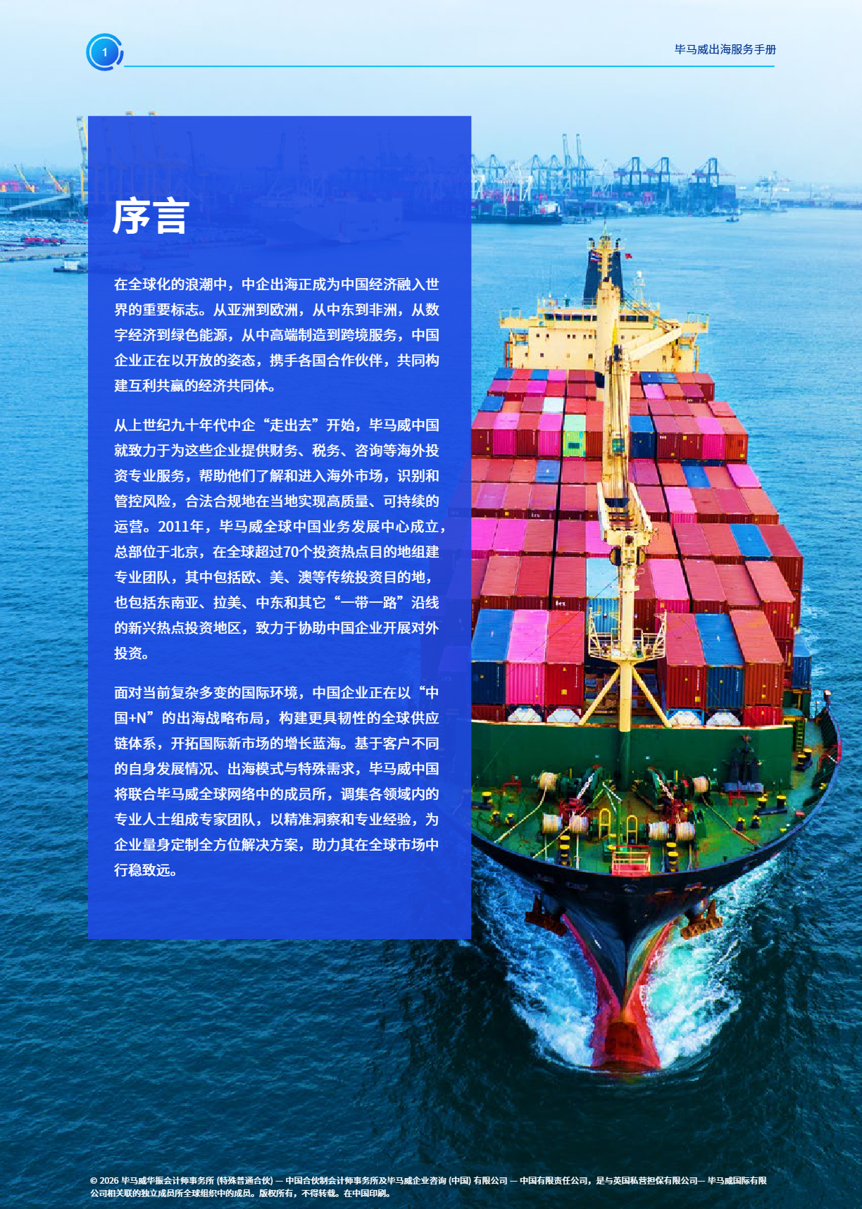 从央企海外并购到民企跨境贸易,从传统制造到高科技产业,毕马威通过丰富的实操案例积累了跨行业、跨区域的服务经验。其服务不仅解决合规、税务、供应链等具体问题,更帮助企业构建长期可持续的全球化运营能力。在复杂多变的国际市场中,毕马威以专业洞察与定制化方案,为中企出海破除壁垒、管控风险,助力中国企业在全球市场中扎根生长,实现从 “走出去” 到 “走得稳、走得远” 的跨越,成为中企全球化征程中值得信赖的专业伙伴。