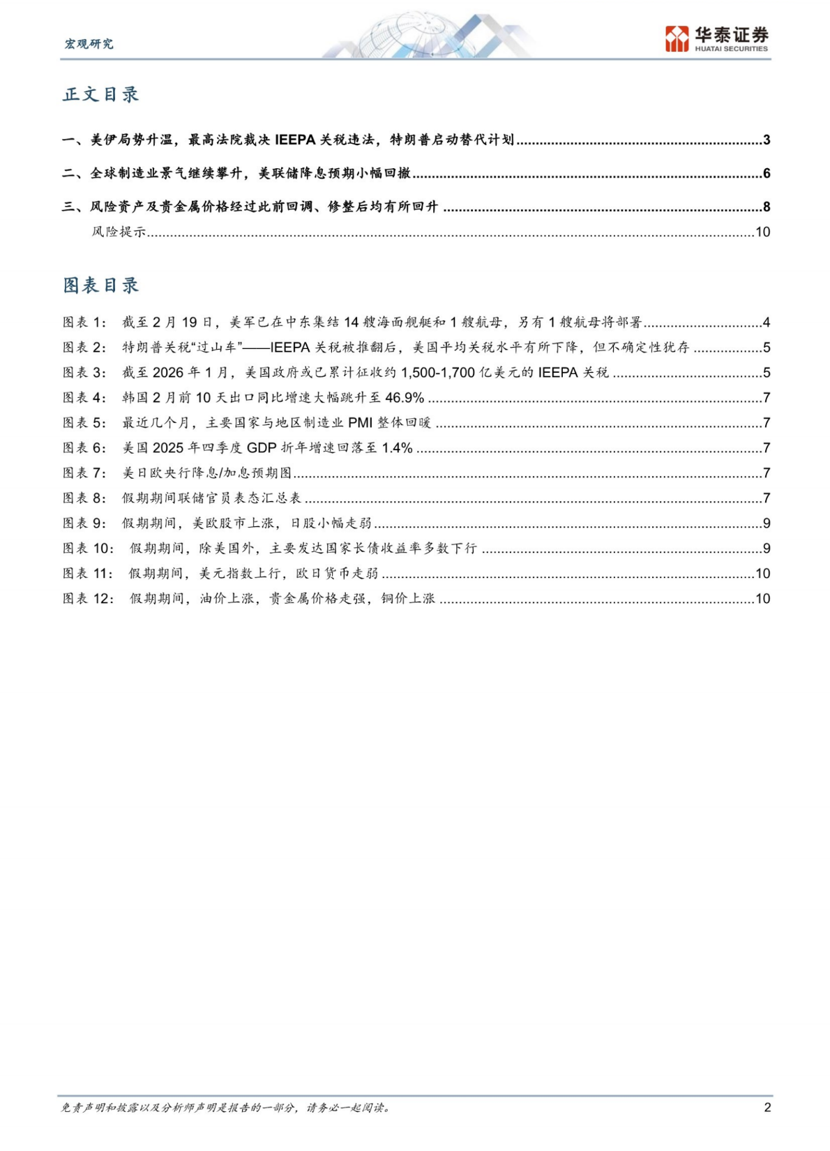此次春节假期的全球市场动态,既凸显了地缘政治与政策调整的短期冲击,也展现了全球经济的内在韧性。特朗普关税政策的不确定性与美联储降息路径的模糊性,仍是未来市场需要应对的核心风险,而全球制造业的修复、美中经贸互动的推进,则为经济增长提供了积极支撑,这些因素将共同塑造 2026 年全球经济的发展轨迹。
