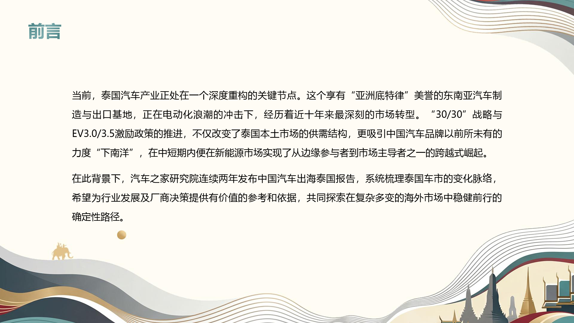面对新形势,中国品牌的进阶之路在于价值重构与深度本地化。品牌层面,需通过重构价值主张、塑造本地化品牌故事、加强 KOL 合作等方式,提升品牌认知度与忠诚度;技术层面,应强化多动力平台布局,优化智能化体验,以快速迭代能力构建差异化优势;生态层面,需持续加码本地产能,深化供应链本地化,完善服务与补能网络,构建产业生态闭环。随着泰国车市逐步向百万级规模回归,中国品牌唯有以品牌升级突破认知壁垒,以技术创新强化产品实力,以生态深耕筑牢本地化根基,才能在复杂多变的市场环境中稳健前行,持续引领泰国乃至东盟汽车市场的电动化变革。