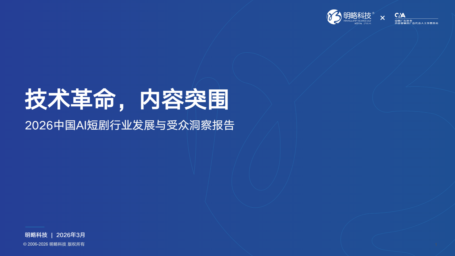 2026 年中国 AI 短剧行业已从技术验证阶段迈入规模化成熟发展期,在技术革新、市场需求、平台扶持与监管规范的共同推动下,形成了完整的产业生态与清晰的发展格局。2025 年被视为 AI 短剧元年,多部爆款作品成功跑通商业闭环,头部单剧投流 ROI 追平甚至超越真人短剧,全年上线项目量同比增长超 10 倍,行业完成从工具厂商、内容创作方到投流方、平台方的全链路搭建。进入 2026 年,随着 Seedance 2.0、可灵 3.0 等新一代多模态模型落地,AI 视频生成实现角色一致、长视频、多模态输入与实时交互四大突破,制作成本大幅下降,生产周期从数月压缩至数天,个人创作者也能产出高质量内容,推动行业进入 AI 原生视频时代。