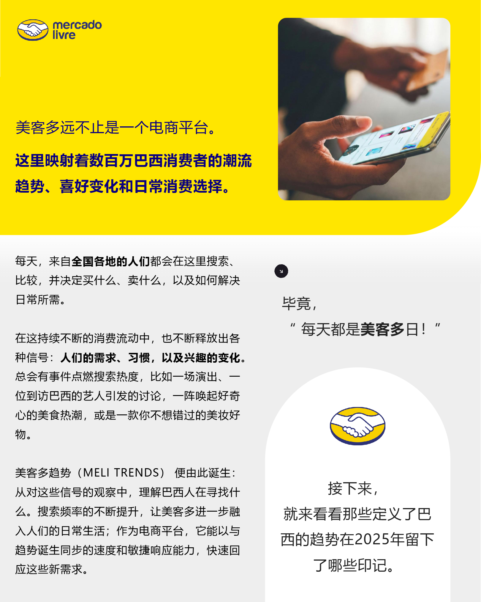 2025 年美客多巴西市场趋势报告全面展现了当地消费市场的多元活力,从风味美食、时尚风格到流行文化、运动健康与娱乐生活,各类热点持续引爆消费需求,成为跨境商家布局拉美市场的重要参考。风味消费成为年度核心趋势之一,草莓、开心果等食材带动相关产品搜索量大幅上涨,草莓相关搜索突破 300 万次,同步带动炼乳等原料需求增长,开心果搜索量更是达到 500 万次,复活节与年末节庆季进一步推动巧克力、圣诞面包等节庆食品热销,形成明显的季节性消费高峰,也让食品相关周边、包装、器具等品类迎来增长机会。时尚领域呈现经典复古回潮态势,波西米亚风格凭借天然面料、流苏细节与柔和配色收获超高热度,搜索量高达 1900 万次,Y2K 风格同样深受 Z 世代追捧,宽松牛仔裤、短款上衣、双肩包等单品持续热销,相关搜索量均保持百万级别,复古元素与现代穿搭需求结合,成为时尚消费的主流方向,也带动服饰、鞋包、家居软装等多品类同步增长。网络爆款与圈层文化持续转化为实际消费力,史迪奇 IP 热度飙升,相关搜索突破 8040 万次,覆盖笔记本、毛绒玩具等多款周边,高仿真重生娃娃凭借社交平台传播走红,搜索量达 4000 万次,涂色书等配套产品同样需求旺盛,这类文化 IP 与小众爱好形成稳定消费圈层,为商家提供清晰的细分赛道机会。运动健康生活方式全面普及,路跑成为全民潮流,跑步 T 恤搜索量高达 1.604 亿次,跑鞋、智能手表等产品需求强劲,网球运动在明星带动下热度高涨,相关搜索突破 1.4 亿次,球拍、服饰、鞋履等产品销量稳步提升,运动场景从专业锻炼延伸至日常社交,带动全品类运动装备增长。娱乐与文化领域持续激发消费热情,巴西本土电影斩获国际大奖,带动影视周边、文创产品热销,国际艺人到访巴西引发粉丝消费热潮,相关服饰、闪粉、周边产品搜索量大幅上涨,书籍、文创等文化产品也登上热搜榜单,成为消费新亮点。年度热搜榜单中,T 恤、运动上衣、肌酸、智能手机、音箱等产品稳居前列,手机、风扇、冰箱、女子运动鞋等日常刚需产品同样占据高搜索量,反映出巴西消费市场兼顾潮流热点与日常需求的特点。整体来看,2025 年巴西消费市场呈现热点清晰、圈层明确、季节性强、刚需与潮流并行的特征,风味、复古、IP、运动、文娱五大方向共同驱动消费增长,消费者既关注节庆、明星、IP 带来的热点消费,也重视日常家居、数码、运动、服饰等刚需产品,美客多平台通过海量搜索数据精准呈现消费偏好,为跨境商家提供选品、运营、营销等全方面参考,帮助商家把握市场节奏,贴合当地需求,在快速变化的市场中抓住增长机遇,实现稳定长效的业务发展,而随着消费活力持续释放,巴西市场也将继续成为拉美跨境电商的核心增长引擎,为全球商家带来广阔发展空间。